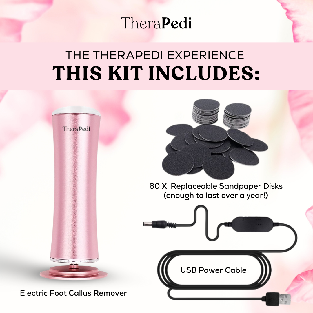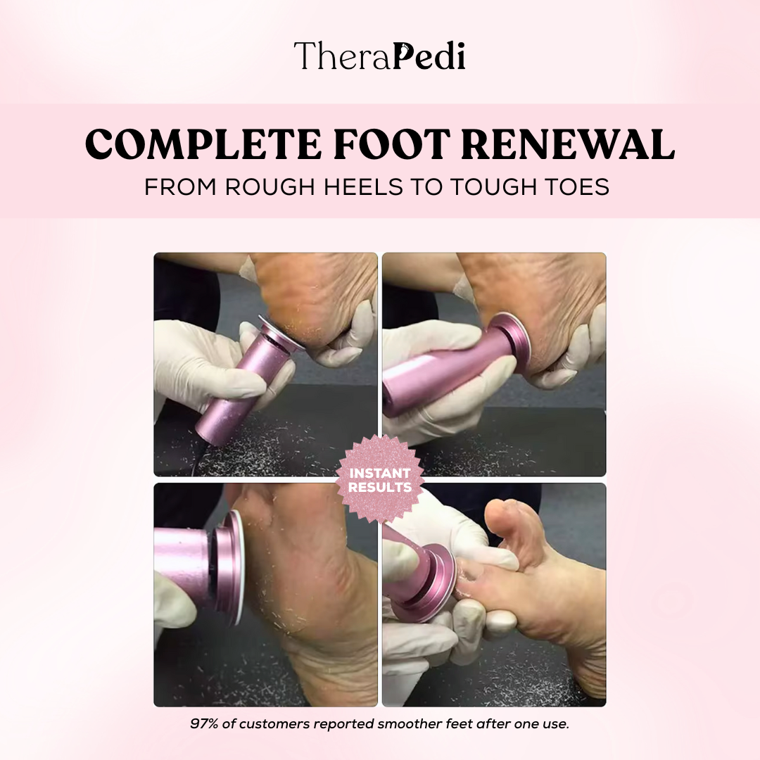 At TheraPedi, we created our Electric Foot Callus Remover with one clear goal: to finally solve the frustration, pain, and embarrassment that comes with calluses and cracked heels. If you’re tired of sore feet, deep cracks, and products that just don’t work, you’re not alone and we’re here to change that! TheraPedi combines salon-grade power with gentle precision to remove tough skin safely and effectively, all from the comfort of home. Designed for real relief, long-term results, and renewed confidence, it’s the self-care solution your feet have been waiting for.